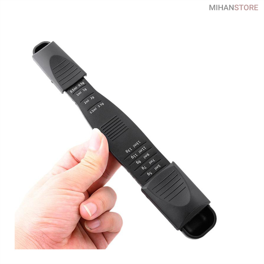 در این قسمت شما را با قاشق اندازه گیری پیمانه دو طرفه Spoon آشنا میکنیم این وسیله در آشپزی کاربرد زیادی دارد و برای اندازه‌گیری مواد اولیه از آن استفاده می‌شود. این پیمانه براساس یک واحد رسمی در پخت و پز شناخته شده و وسیله بسیار دقیقی در دستورالعمل غذاهاست. تمام سایز های مورد نیاز در یکجا فقط کافیه مخزن روی قاشق را با انگشت به صورت کشویی بالا و پایین ببرید تا به معیار مورد نظر برسید. از جنس پلاستیک درجه یک ساخته شده است ، شستشوی این پیمانه ها بسیار راحت می باشد و فضای خیلی کمی را اشغال می کند چون  پیمانه اندازه یک قاشق است پس از این نظر خیالتان راحت است که فضای زیادی را اشغال نمی کند. از این محصول برای اندازه گیری مایعات و دارو ها نیاز می توانید استفاده کنید.