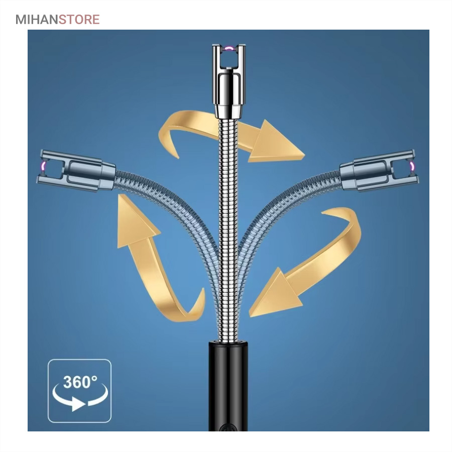 بدنه‌ی این فندک از استیل بادوام ساخته شده است که علاوه بر مقاومت بالا، ظاهری شیک و مدرن نیز دارد. سری قابل چرخش 360 درجه‌ای آن، استفاده از فندک را در زوایای مختلف بسیار آسان کرده و باعث افزایش راحتی کاربر می‌شود. این ویژگی به‌خصوص در هنگام روشن کردن شمع، اجاق، باربیکیو و حتی آتش در طبیعت، بسیار کاربردی خواهد بود.