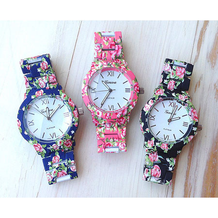 این ساعت یکی از جدیدترین و دوست داشتنی ترین ساعت های سال می باشد که دارای طراحی بی نظیر و خلاقانه ای بوده و توانسته است با عرضه خود به بازار طرفداران بی شماری را در سراسر جهان جذب کند. این ساعت دارای بند زیبا و طرح دار می باشد که بصورت شگفت انگیزی خودنمایی میکند و گل های موجود بر روی این ساعت زیبایی آن را دوچندان میکند. این ساعت در رنگ بندی و طرح های مختلف با کیفیت فوق العاده بالا عرضه شده است. اگر طرح یا رنگ خاصی مد نظر شما می باشد هنگام ثبت سفارش می توانید در قسمت پیغام ذکر کنید.